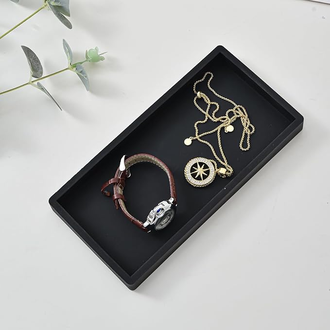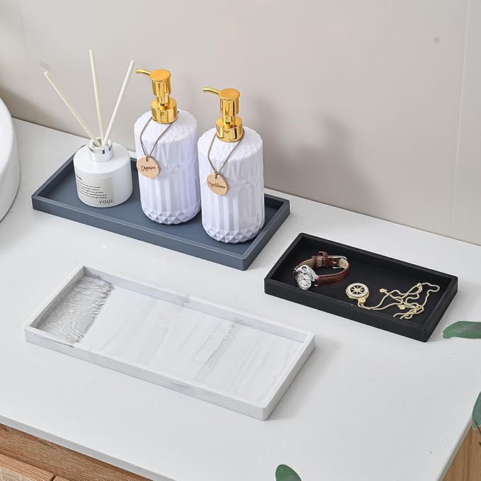 - 【Elegant Black & Marble Options】Choose from sleek black or marble-finish silicone to match any decor. The black vanity tray adds a modern touch, while the marble variant mimics natural stone for a luxurious look. Perfect as bathroom vanity trays for counter or kitchen sink trays for counter.