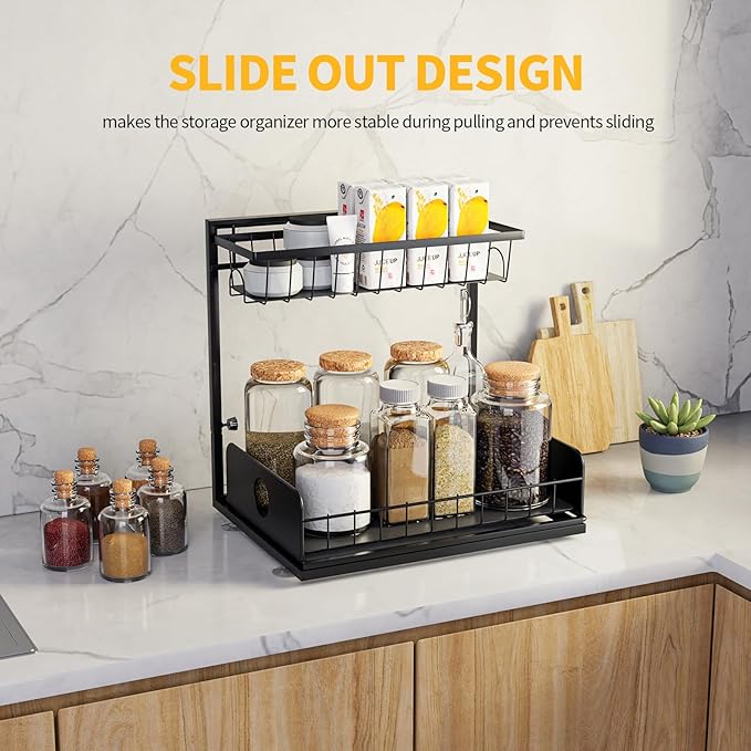 - Smooth Sliding Drawer: under-sink organizer features a pull-out design more convenient than standard storage organizers. The bottom drawer pulls out to access items behind the front row, making retrieval more flexible and easier in limited spaces