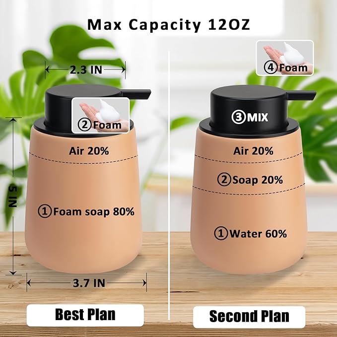 Soap Foaming Dispenser Ceramic with Easy-to-Press Pump Hand Foam Dispenser for Shampoo Bathroom Kitchen 12 oz