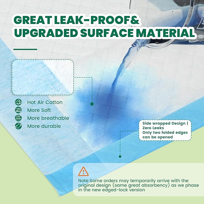 - 【PREMIUM MATERIAL】The surface layer of the disposable puppy pee pads is made of thicker hot-air cotton material,which can quickly lock moisture and inhibit odor,It is soft and sturdy,skin-friendly without causing any harm to the puppy paws.