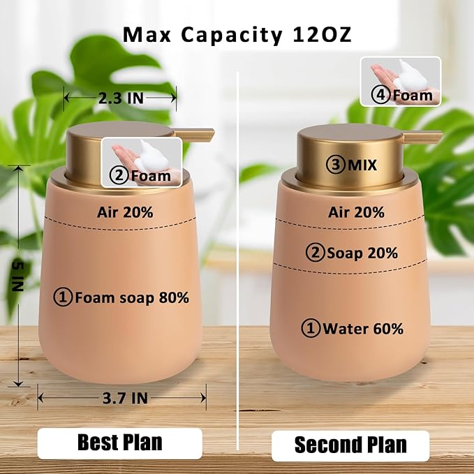 Soap Foaming Dispenser Ceramic with Easy-to-Press Pump Hand Foam Dispenser for Shampoo Bathroom Kitchen 12 oz