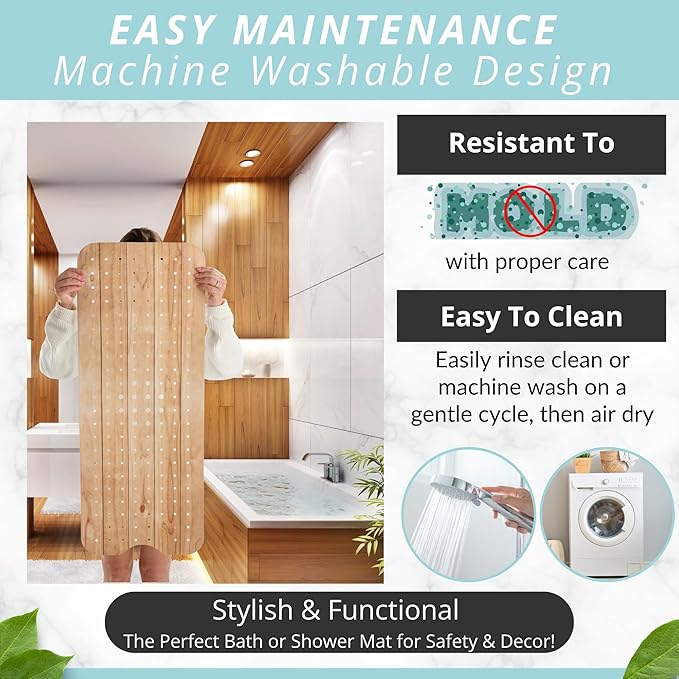 - EXTRA LARGE SIZE measuring 40 inches in length and 16 inches in width for full tub coverage, preventing slips and falls during bathing and showering, and ensures a worry-free showering experience for individuals of all ages, including the young and elderly