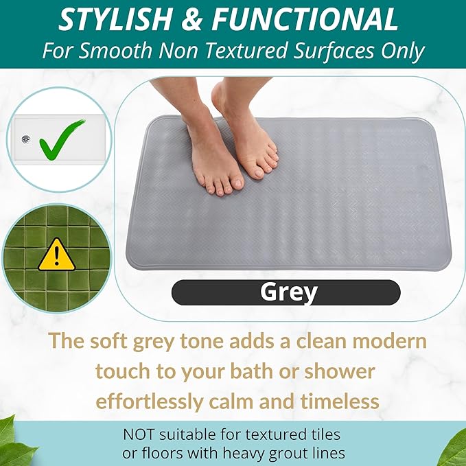 - ENKOSI Non-Slip Bath Mat for Bathtub and Shower: Featuring durable PVC construction and strong suction cups, this non-slip bath mat stays securely in place for ultimate safety in your bathroom, shower, or tub.