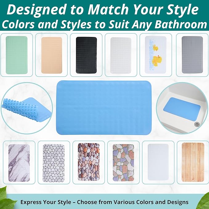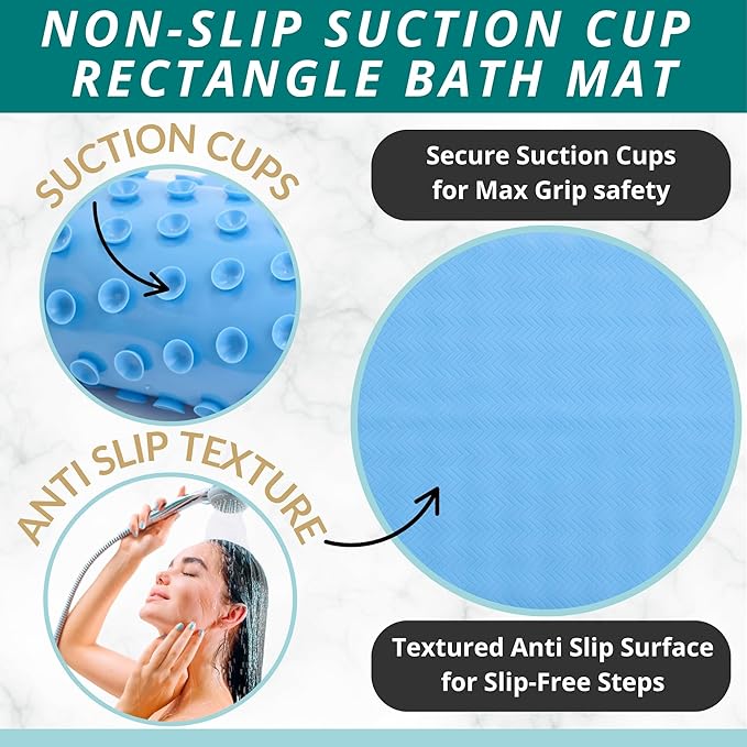 - ENKOSI Non-Slip Bath Mat for Bathtub and Shower: Made from durable PVC and equipped with strong suction cups, this bath mat stays firmly in place—offering reliable, slip-resistant safety on smooth bathroom, shower, or tub floors.