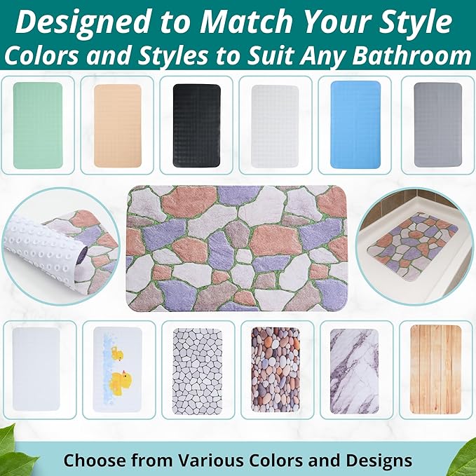 - ENKOSI Non-Slip Bath Mat for Bathtub and Shower: Featuring durable PVC construction and strong suction cups, this non-slip bath mat stays securely in place for ultimate safety in your bathroom, shower, or tub.