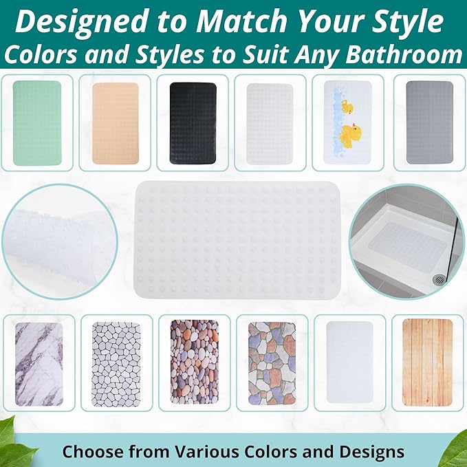 - ENKOSI Non-Slip Bath Mat for Bathtub and Shower: Featuring durable PVC construction and strong suction cups, this non-slip bath mat stays securely in place for ultimate safety in your bathroom, shower, or tub.