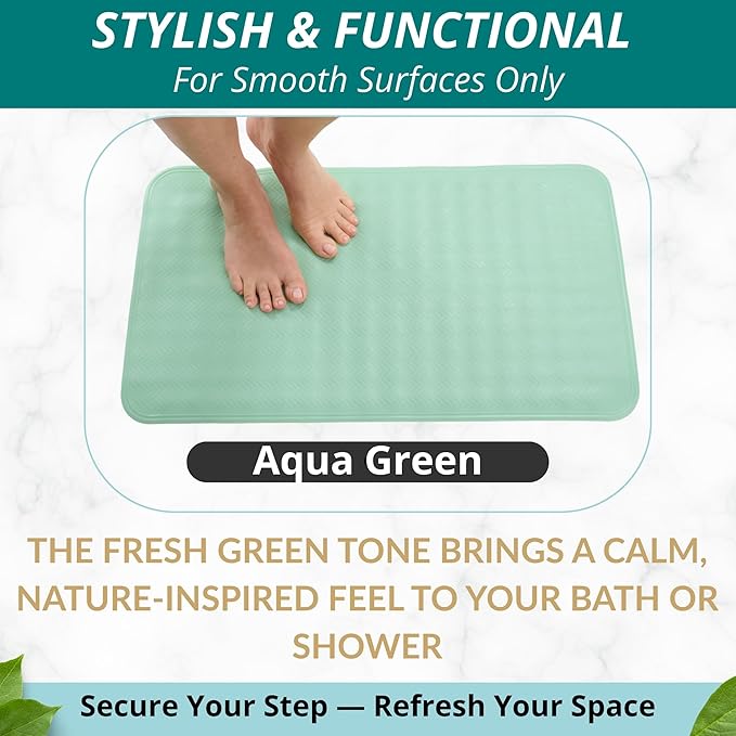 ENKOSI Non Slip Shower Mat – Bath Mat for Tub and Shower Floors – Anti Slip Bathtub Mat with Strong Suction Cup Grip – Soft, Green Bathroom Mat for Inside Bath and Shower Floors (28x16 Aqua Green)