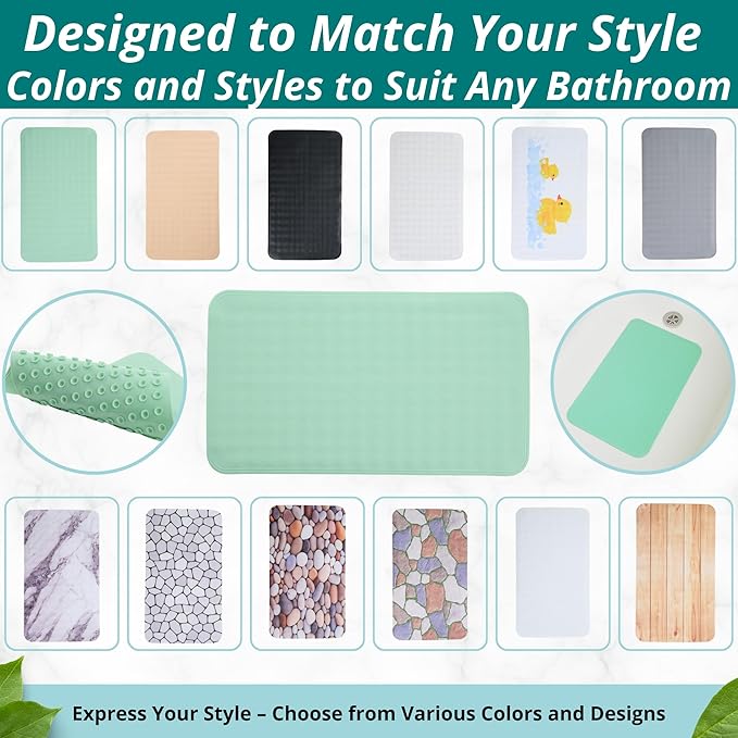 - ENKOSI Non-Slip Bath Mat for Bathtub and Shower: Featuring durable PVC construction and strong suction cups, this non-slip bath mat stays securely in place for ultimate safety in your bathroom, shower, or tub.