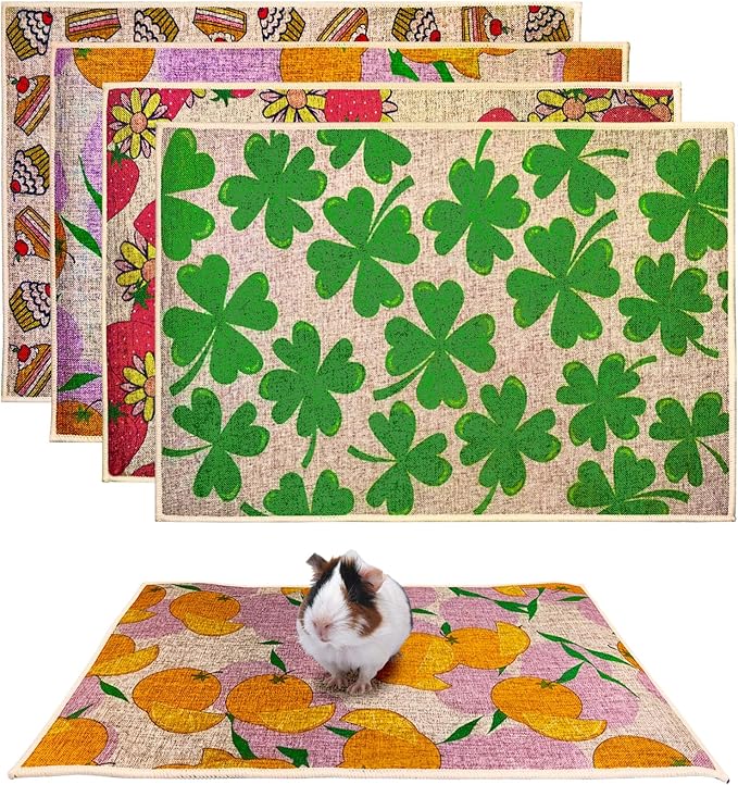 kathson 4 Pcs Guinea Pig Cage Liner Washable Small Animals Bedding Waterproof Guinea Pig Training Mat Reusable Pee Pads for Hamster Rat Chinchilla Hedgehog Gerbil