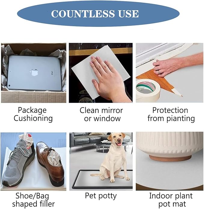 - Recyclable: Eco-friendly, smooth, flat and clean material, providing peace of mind while minimizing environmental impact. Can be reused to clean windows or filling inside shoes, bags.