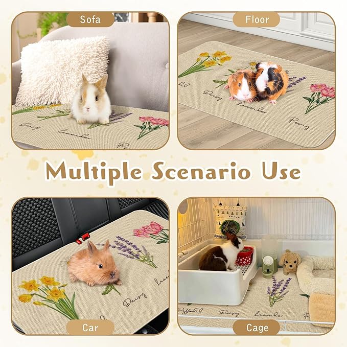 - Multi-functional Bunny Mat: This guinea pig mat can not only be placed directly on the floor, sofa, car seat, bed or cage for your small pets. It is also suitable for bathroom, kitchen or living room as home furnishings. Our multi-functional small animal mat can better let you and your furry friend live in a clean and health space