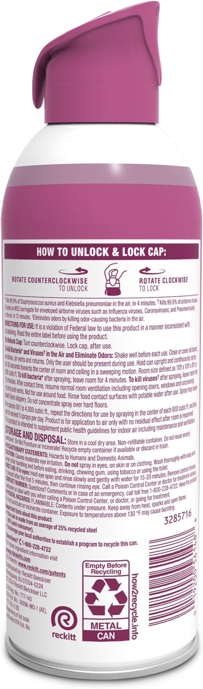 - ELMINATES 99.9% OF VIRUSES AND BACTERIA IN THE AIR: Lysol Air Sanitizer Spray is tested and proven to eliminate 99.9% of viruses and bacteria* in the air. (*Use as directed); EPA Reg No. 777-143