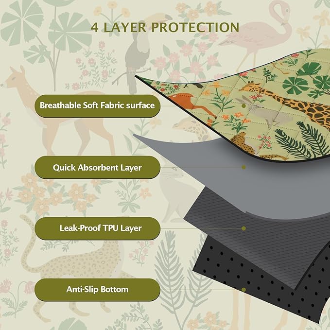 IEUUMLER Washable Pee Pads for Dogs, 2 Pack Forest Pattern Reusable Waterproof Puppy Pads, Non-Slip Super Absorbent Dog Training Pad for Playpen Crate Bed EU013 Green Jungle, 30x20
