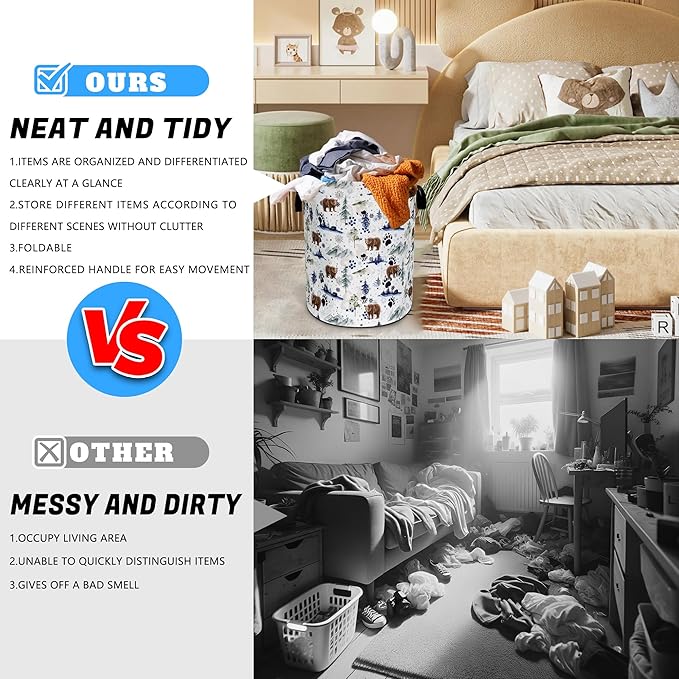 - Multi-Purpose Basket: In addition to laundry, it is also very suitable for storing and organizing books, blankets or other items. It has a wide range of uses, keeping your living environment clean, beautiful and tidy. It is a multi-functional product. The artistic design laundry basket is placed in the bathroom, bedroom, laundry room, children's room, dormitory and other places. It is a practical and fashionable item.
