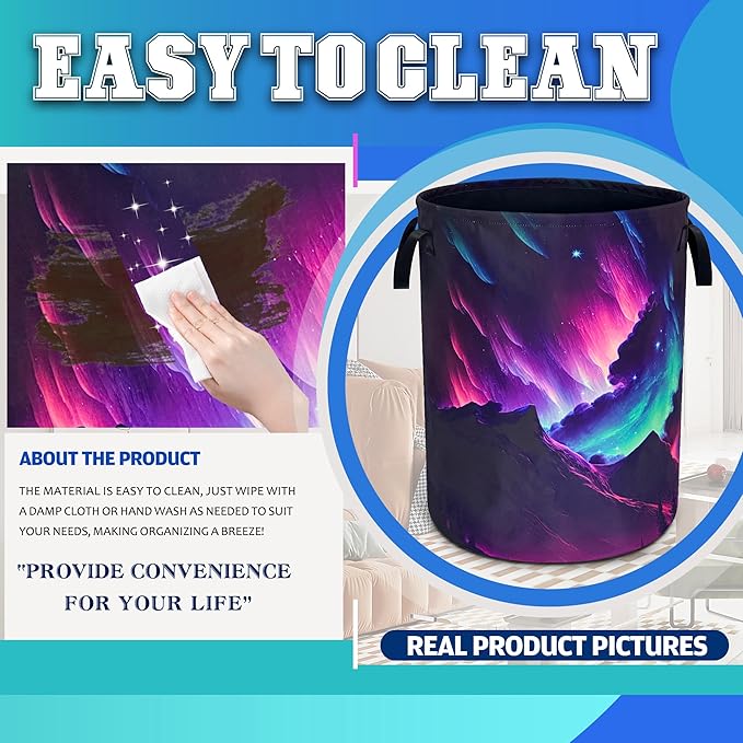 Beautiful Aurora Mountain Laundry Basket Oxford Cloth Laundry Hamper With Handle Foldable Portable Clothes Storage Basket 18.9 X 16.5 In Storage Bag For Laundry Room/Bathroom/Bedroom/Dormitories