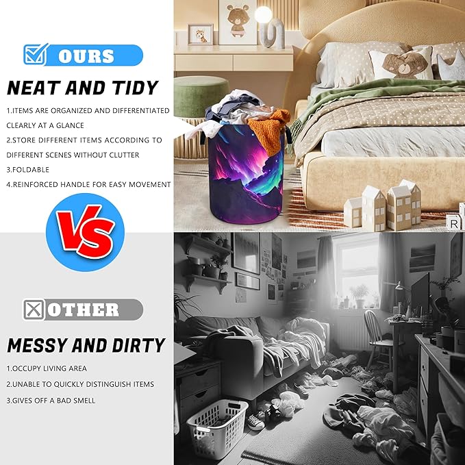 - Multi-Purpose Basket: In addition to laundry, it is also very suitable for storing and organizing books, blankets or other items. It has a wide range of uses, keeping your living environment clean, beautiful and tidy. It is a multi-functional product. The artistic design laundry basket is placed in the bathroom, bedroom, laundry room, children's room, dormitory and other places. It is a practical and fashionable item.