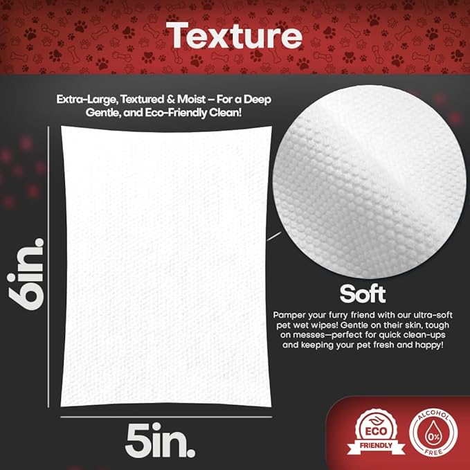 - XL 5X6" MEDICATED PET WIPES – Over 4× larger than typical 2–3" pads; one wipe covers more surface, saving time, money, and stress while keeping pets comfortable.