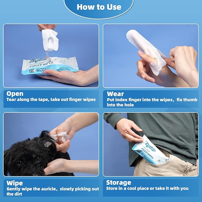 - Protect Pet's Ears Health - Dogcator pet ear cleaning finger wipes are made of thicken non-woven with natural ingredients. Effectively clean wax, dirt and debris inside your pet's ears.