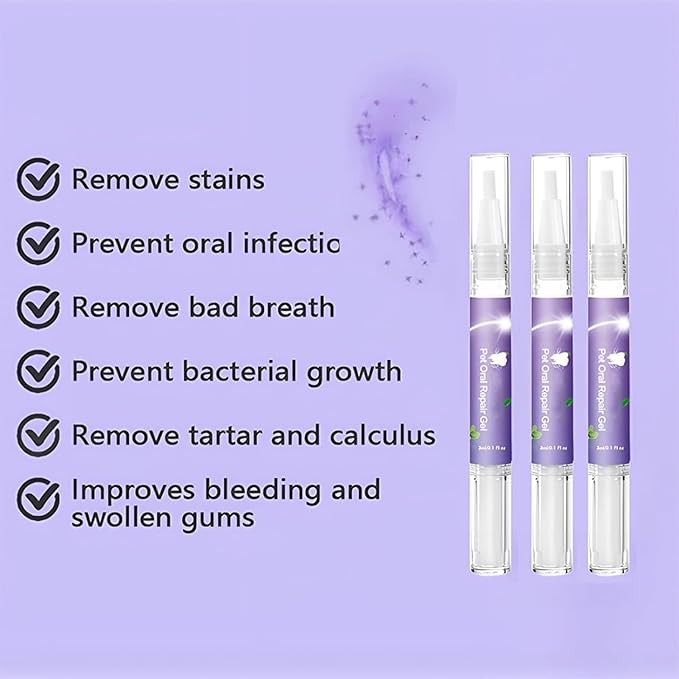 - 【Pet Oral Restoration Whitening Gel】Pet Oral Repair Gel Can Thoroughly Whiten Yellow Teeth, Remove Tartar Accumulated On Teeth, Solve Dental Plaque, And Bring A Comprehensive And Clean Oral Experience. Remove Bad Breath, Relieve Tooth Sensitivity, Gum Bleeding, Etc.