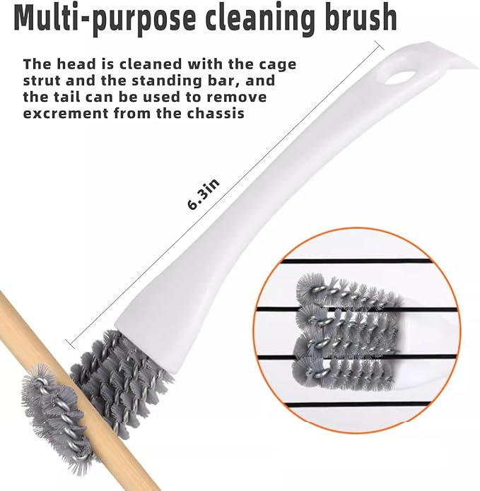 - 5-piece set: (1) stainless steel cleaning shovel, which can be used to shovel off the feces of small animals (2) cage post cleaning tool, which can be used to clean feces on the cage post (3) stainless steel wire brush, which has very strong cleaning power and can clean feces anywhere, but need to be used with care! (4) Multi-functional brush, which can brush the feces on the pole or cage post (5) Small broom, which is convenient to clean up the feces you have cleaned
