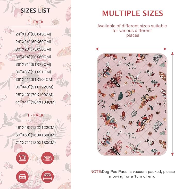 - 【Easy to clean and Washsble】 Our washable potty pads for dogs are durable and can be washed many times. Moreover, the pads also provide convenience for your life. One is cleaned and the other is used in turn. The different sizes available are ideal for any breed or size of dog.