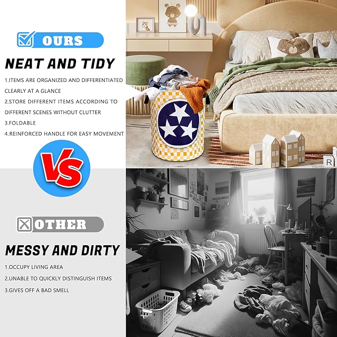 - Versatile And Foldable: When not in use, our laundry basket can be folded to save space and easy to store, which is perfect for people with busy lives. (The laundry basket you just received comes with compression packaging. It may wrinkle during long-distance transportation. This is normal. You can iron it with an iron and a hair dryer, or fill it with clothes. It will recover after a few days of use).