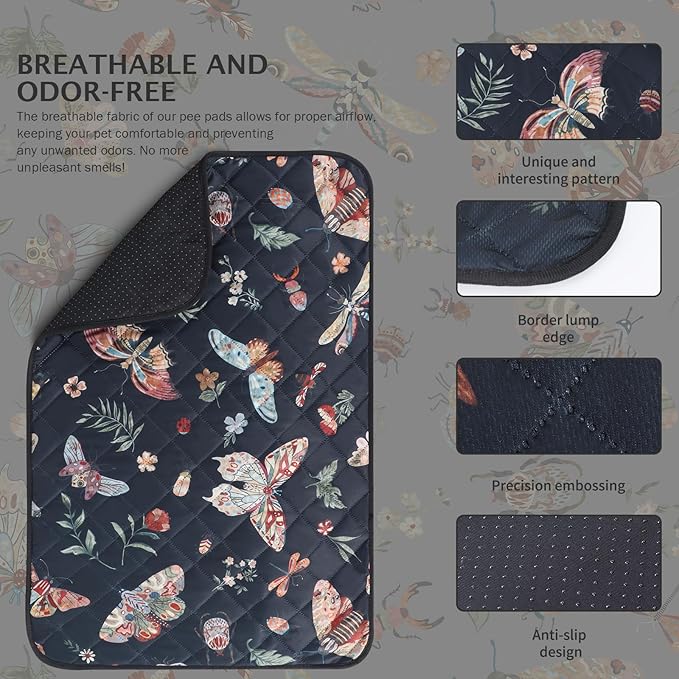 IEUUMLER Washable Pee Pads for Dogs, 2 Pack Insect Pattern Reusable Waterproof Puppy Potty Pads, Non-Slip Absorbent Pet Training Pads for Playpen Crate Bed EU014