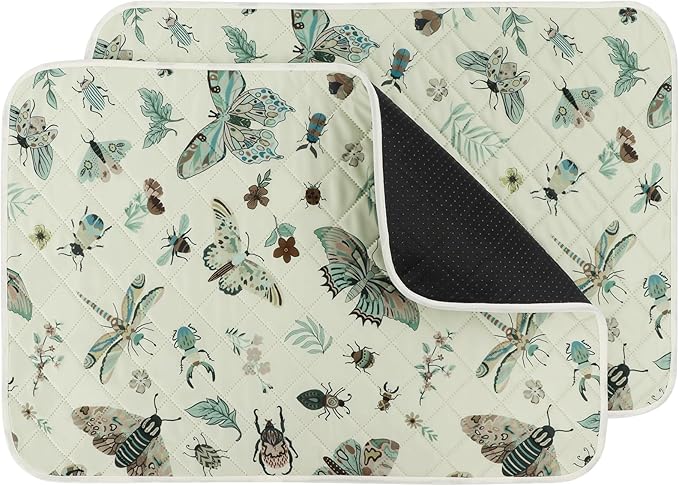 IEUUMLER Washable Pee Pads for Dogs, 2 Pack Insect Pattern Reusable Waterproof Puppy Potty Pads, Non-Slip Absorbent Pet Training Pads for Playpen Crate Bed EU014