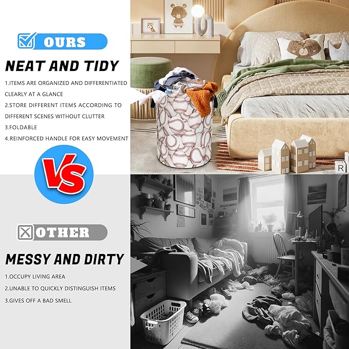 Baseball Laundry Basket Ball Oxford Cloth Laundry Hamper With Handle Foldable Portable Clothes Storage Basket 18.9 X 16.5 In Storage Bag For Laundry Room/Bathroom/Bedroom/Dormitories