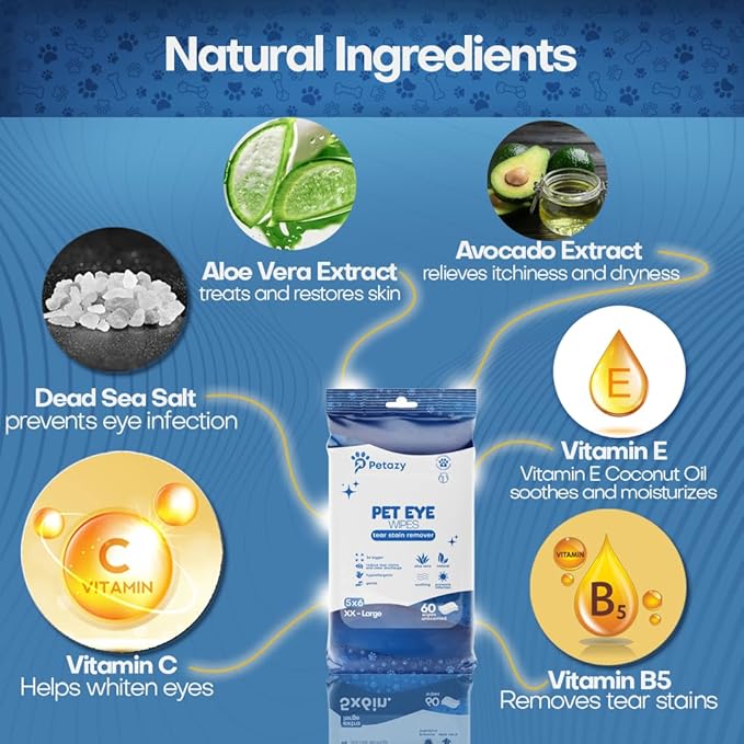 - XL 5X6 INCHES FOR FULL COVERAGE – Large, extra-long wipes reach tear corners, under eye folds, and face fur for a thorough clean with less effort.