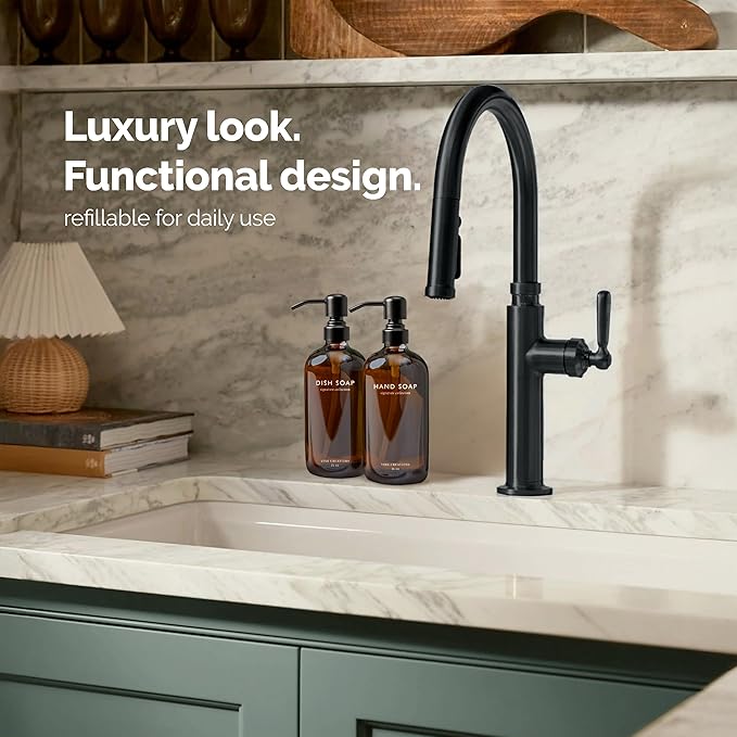 - BUILT TO PERFORM – Each dispenser is topped with a matte black stainless steel pump that’s as durable as it is refined. Rust-resistant, smooth to use, and designed to complement any modern kitchen or bathroom.