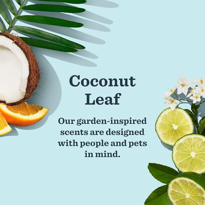- SCENTS DESIGNED WITH PEOPLE AND PETS IN MIND: Coconut Leaf scent smells like a fresh, breezy blend of green palms and creamy coconut—keeping your pet’s world smelling like a tropical getaway