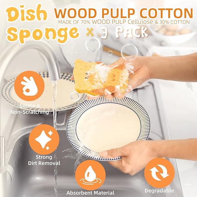 - Highly Absorbent & Durable: Made from wood pulp cotton, the sponge softens and expands on contact with water for exceptional absorbency. It hardens when dry to retain its shape and last longer.