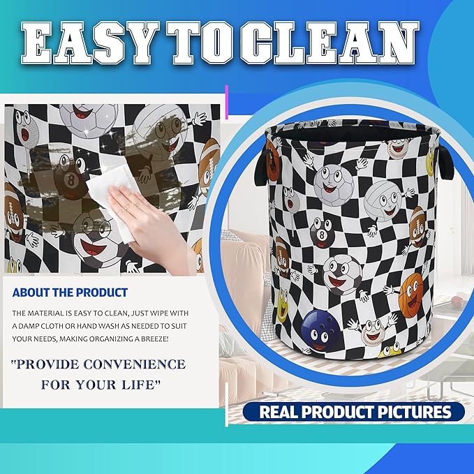 Ball Laundry Basket Oxford Cloth Funny Various Types Of Balls Laundry Hamper With Handle Foldable Portable Clothes Storage Basket 18.9 X 16.5 Storage Bag For Laundry Room/Bathroom/Bedroom/Dormitories