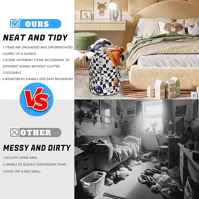 - Multi-Purpose Basket: In addition to laundry, it is also very suitable for storing and organizing books, blankets or other items. It has a wide range of uses, keeping your living environment clean, beautiful and tidy. It is a multi-functional product. The artistic design laundry basket is placed in the bathroom, bedroom, laundry room, children's room, dormitory and other places. It is a practical and fashionable item.