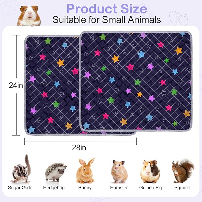 2 Pack Guinea Pig Bedding, Washable Guinea Pig Cage Liner Reusable Guinea Pig Mat Waterproof Guinea Pig Bedding for Cage, Super Absorbant Guinea Pig Pee Pads for Small Animals Hamster Rabbit Squirrel