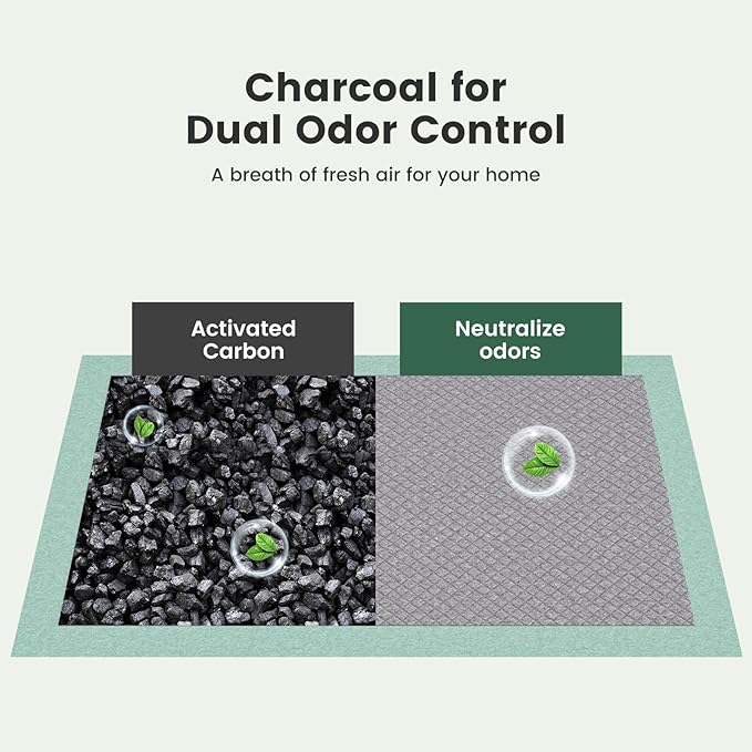 - 【Odor-Control】Crafted froml activated carbon, our cat pee pads boast an adsorption ability. This feature not only purifies the air but also eliminates unpleasant odors of urine, which ensuring a fresh and healthy environment for your cat!