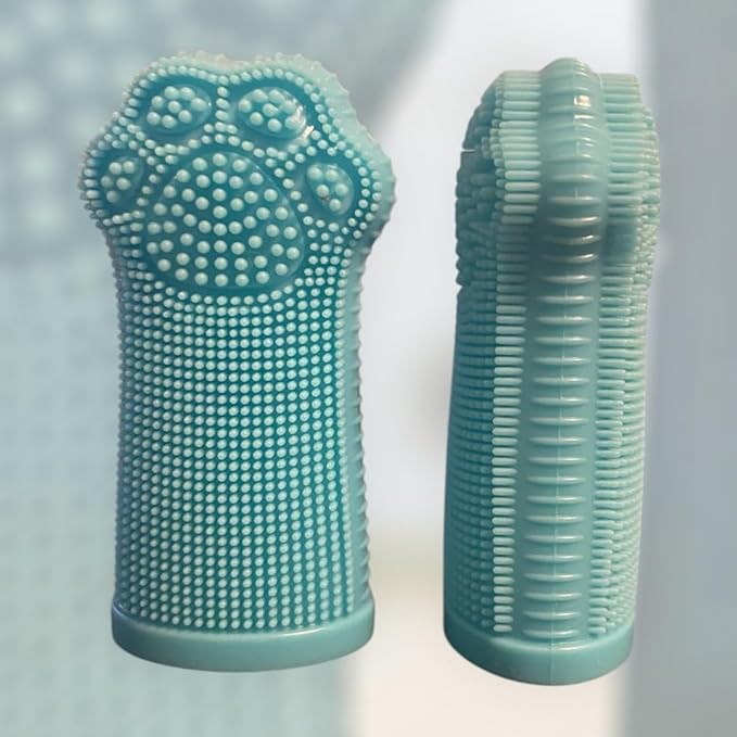 Dog Toothbrush PAW, 360 Tooth Brushing Kit, Cat Toothbrush, Dog Teeth Cleaning, Finger Tooth brush, Dental Care, Small & Large Pets, Toothpaste Not Included (Blue, 1 Count (Pack of 2))