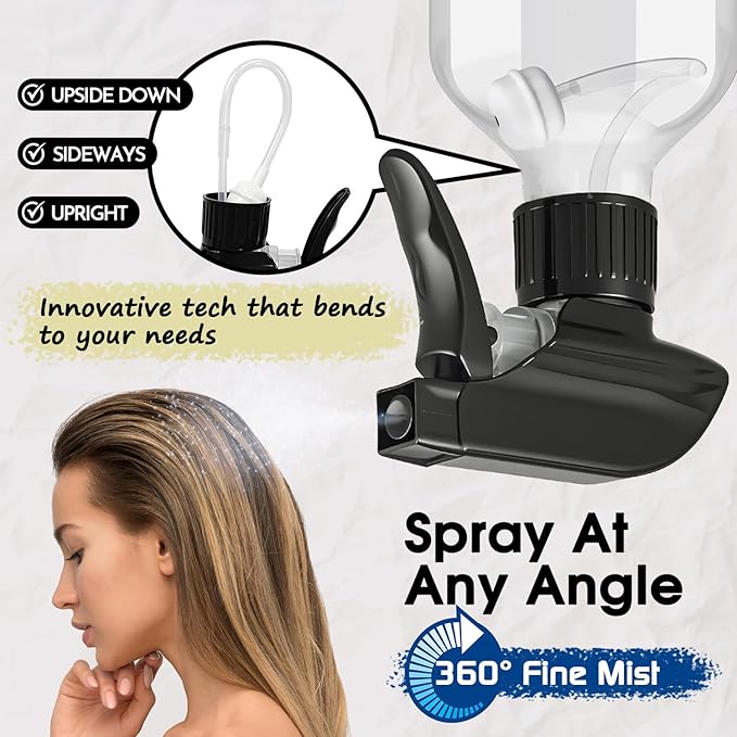 - 【Spray from Any Angle】- You will get 2 packs clear plastic spray bottle for daily use. Our spray bottles allow for upside-down, sideways, and upright spraying, ensuring every drop is used efficiently. The straw is equipped with a gravity ball to facilitate multi angle spray, such as the scene where the bottle needs to be tilted or inverted. You can refill liquid when the liquid level is low, or adjust the position of gravity ball by shaking the bottle to obtain a better spray effect. The combination of the trigger sprayer and gravity ball is also suitable for 500ml bottles.