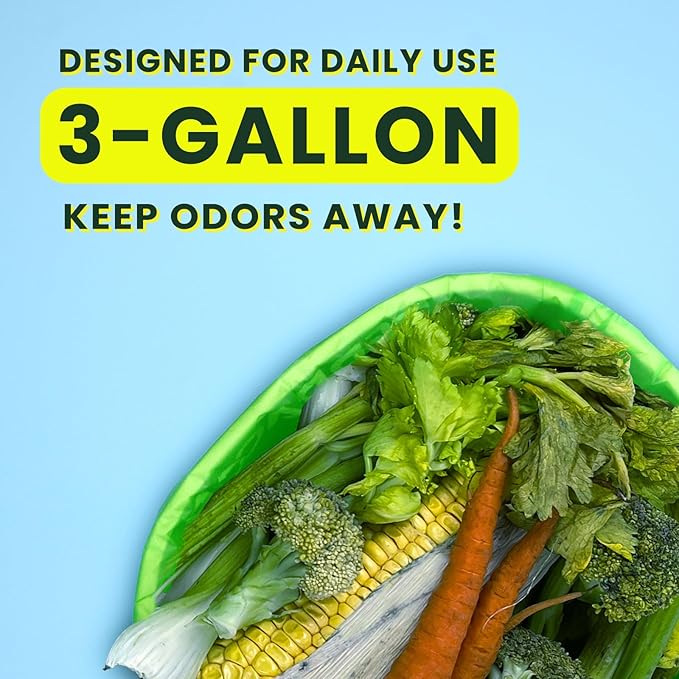 - 3-Gallon Compost Bags Applications:Size:16.9in x 17.7in, Packaging: 200 Count,100 Bags Per Box ( Pack of 2) . Ideal for kitchen food waste, small compost bins, home gardening, and office use. Perfect for collecting fruit peels, coffee grounds, plant trimmings, and other organic waste.
