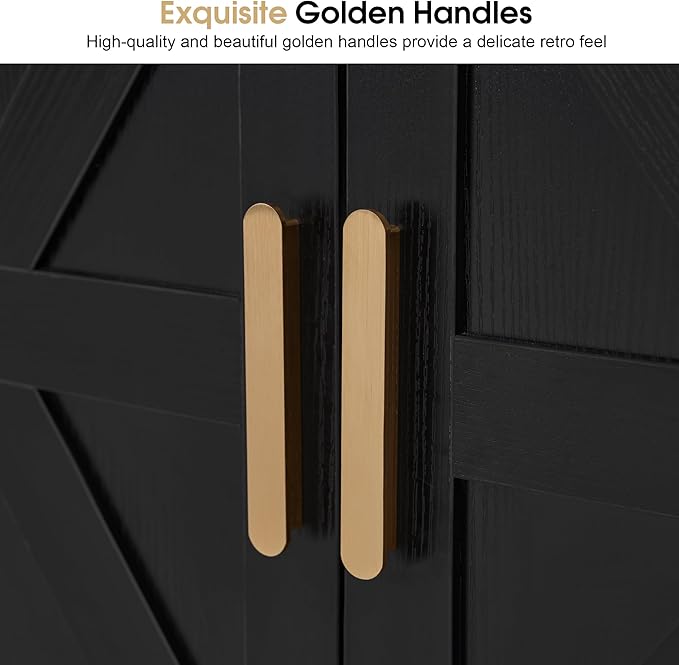 - [Exquisite Golden Handles]: The drawers and cabinet doors are fitted with high-quality golden handles that are not only aesthetically pleasing but also add a touch of retro elegance. These handles enhance the unit's design while ensuring comfortable and durable use.