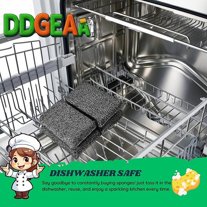 Heavy - Duty Kitchen Sponge - 20 Times More Durable, Scratch Free, Suitable for Non - Stick Cookware - Cut - Resistant, Multi - Purpose Cleaning Supplies for Home (4 Pack, Grey)