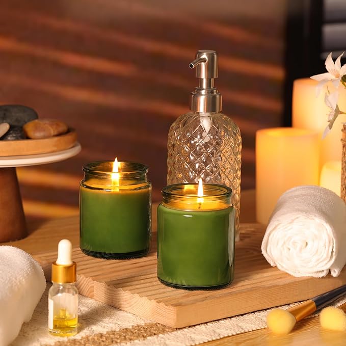 - Perfect home decoration: The green candle container adopts wooden lid and glass design, which looks stylish, simple and modern. It can be used as home decoration and placed in any corner. Light your DIY aromatherapy, and the candlelight through the candle jar will create an extremely warm family atmosphere.