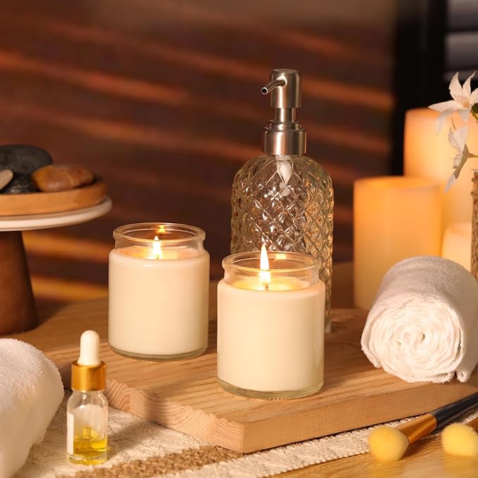 - Perfect home decoration: The glass candle container adopts wooden lid and glass design, which looks stylish, simple and modern. It can be used as home decoration and placed in any corner. Light your DIY aromatherapy, and the candlelight through the candle jar will create an extremely warm family atmosphere.