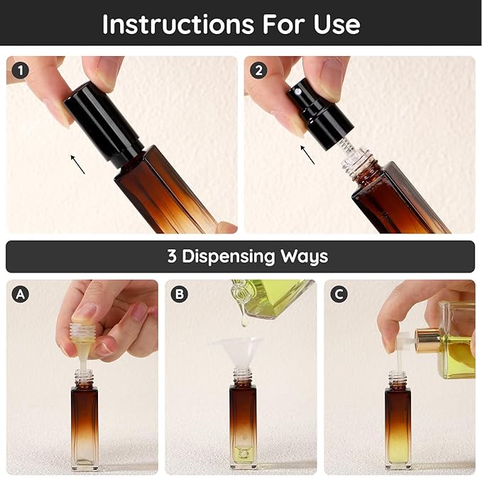 - Easy to Refill: Comes with 2*FUNNEL+2*DROPPER+2*PUMP, you can easily dispense liquid into the mini perfume atomizer