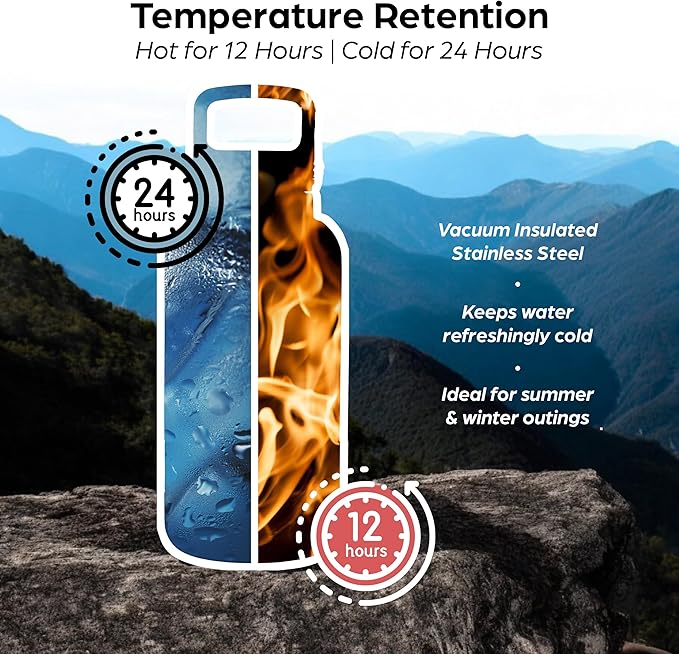 - LEAK-PROOF & SWEAT-FREE DESIGN The double-wall vacuum seal keeps water cold up to 24 hours while preventing leaks and condensation. Your backpack stays dry, always.
