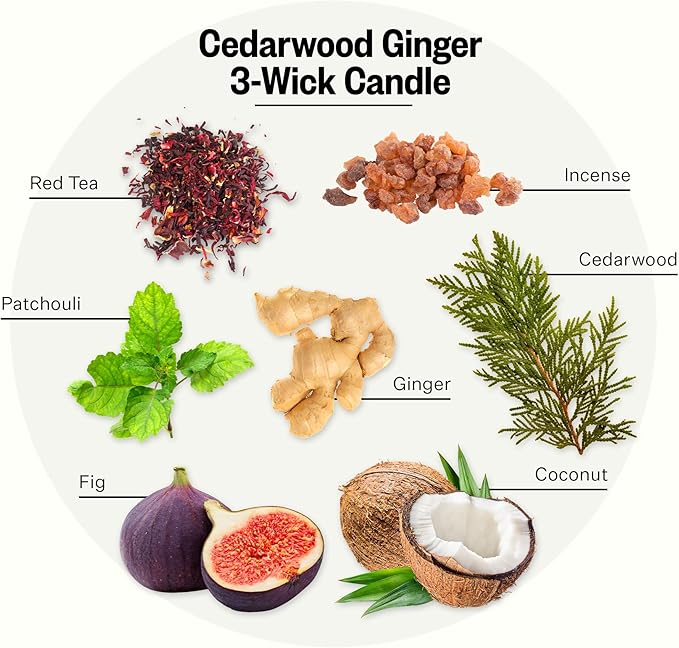 - The Fragrance: Cedarwood Ginger blends red tea and ginger with juicy fig and sweet coconut, accentuated by cedarwood, patchouli, and incense for an enticing and enchanting fragrance.