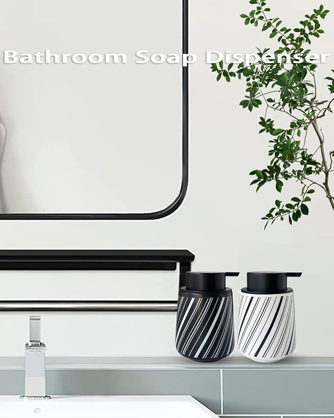 - Plastic Pump and Ceramic Bottle:The bottle of this foam soap dispenser is made of high-quality ceramic, lead-free, and the matte black pump is made of plastic,and BPA-free.Safe to use.The bottom is non-slip, and it's heavy enough not to tip over easily.