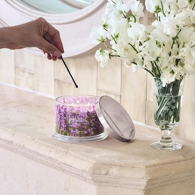 HomeWorx by SLATKIN + CO. Candle- Sea Salt Lavender, 14 oz. 3-Wick Premium Scented Candle - 20-40 Hours Burn Time