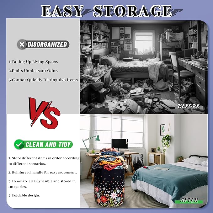 - Multi-Purpose: Our laundry hamper is a multi-functional basket, besides storing clothes, it can also be used to organize toys, clothes, office sundries and household sundries, it is very versatile, and can be placed in bathrooms, bedrooms, laundry rooms, children's rooms, dormitories, kitchens, offices and other places. Make your living environment beautiful and neat
